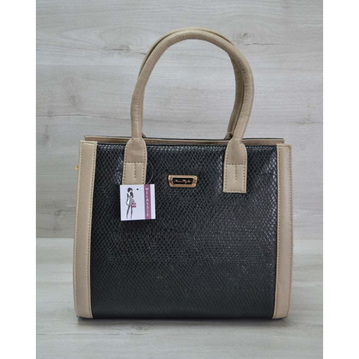 Жіноча, класична сумка WeLassie, виготовлена з штучної шкіри. Має одне відділення на блискавці. Всередині є кишеня на застібки і відрита кишеня для мобільного телефону, а також розділові відділення. Є зовнішня кишеня для дрібних предметів. Ручки міцні - висота їх розрахована, щоб носити сумку в руці, або на згині ліктя.
