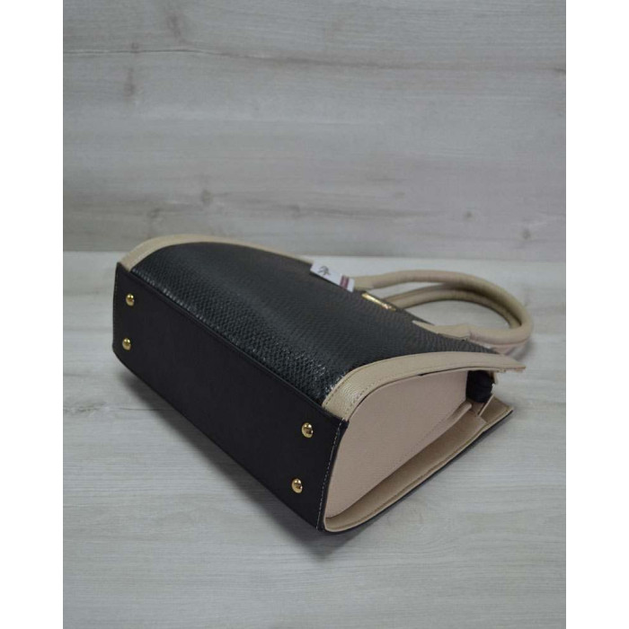Жіноча сумка Бочонок чорного кольору зі вставкою кавовий крокодил WeLassie