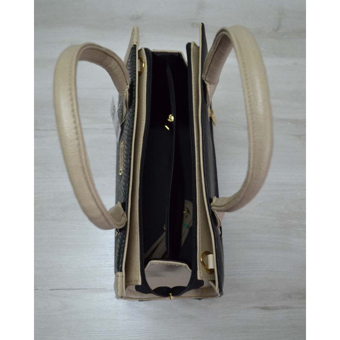 Жіноча сумка Бочонок бежевого кольору зі вставкою бежевий крокодил WeLassie