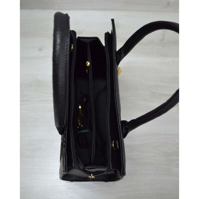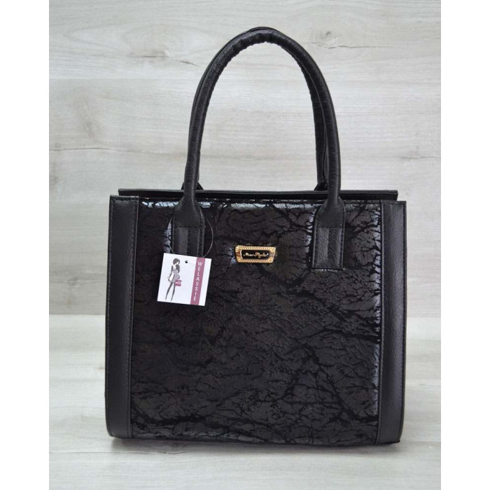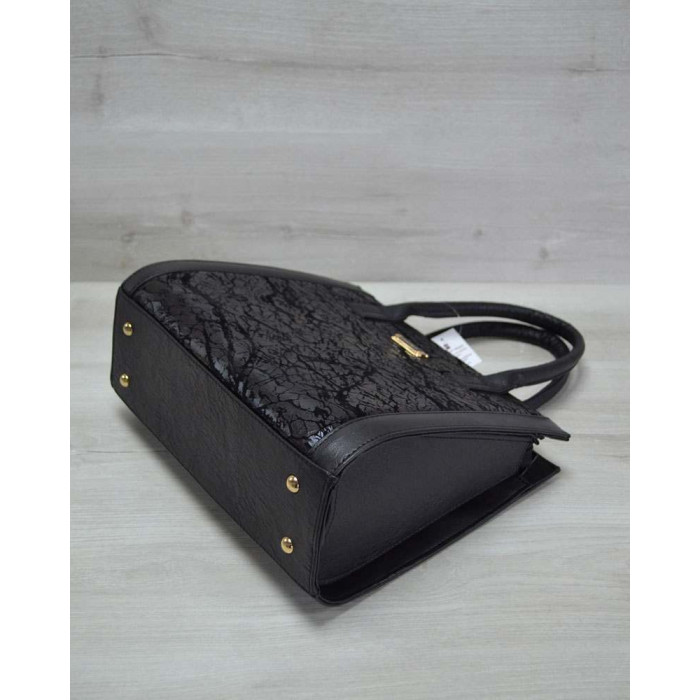 Жіноча сумка Бочонок чорний з чорної лаковою вставкою WeLassie