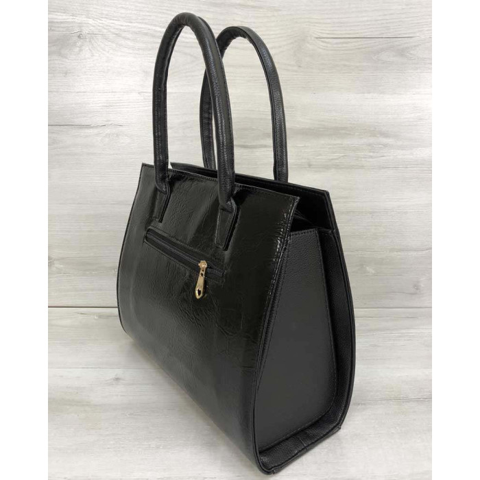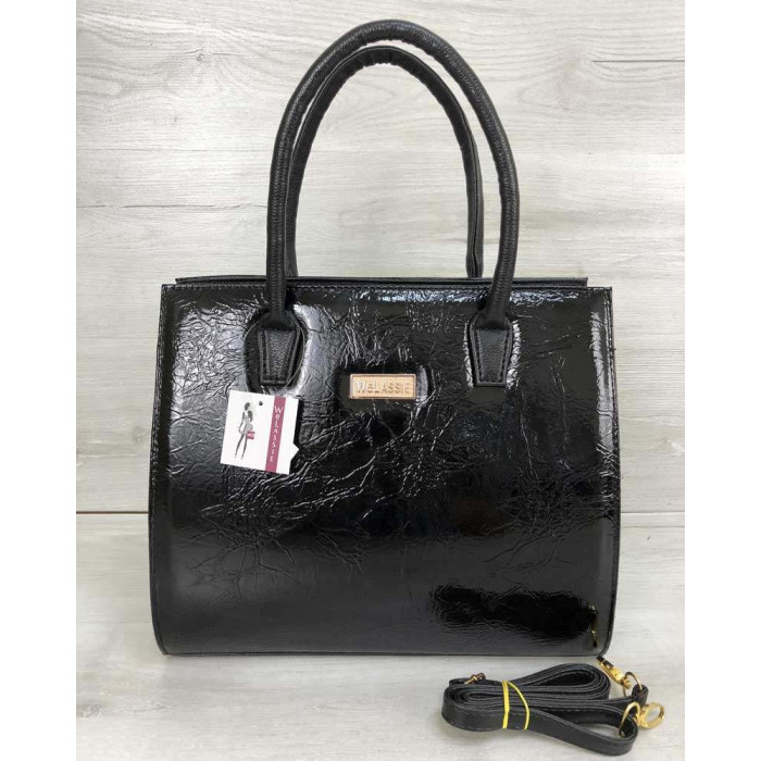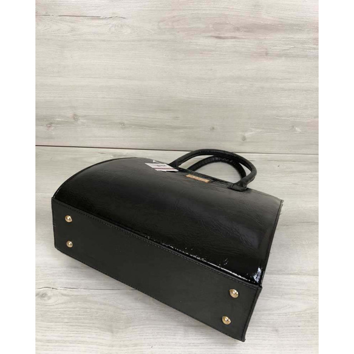Жіноча сумка Бочонок чорний з чорної лаковою вставкою WeLassie