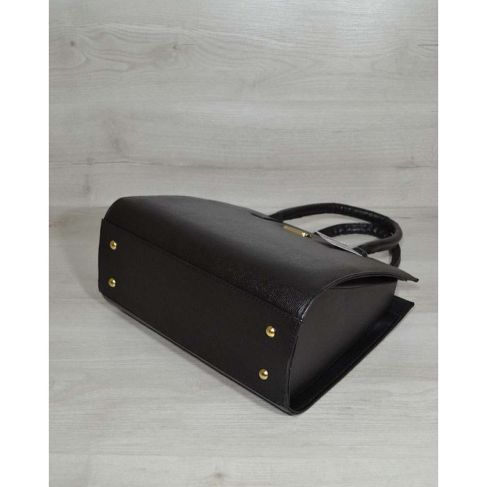 Жіноча сумка Бочонок чорний з чорної лаковою вставкою WeLassie