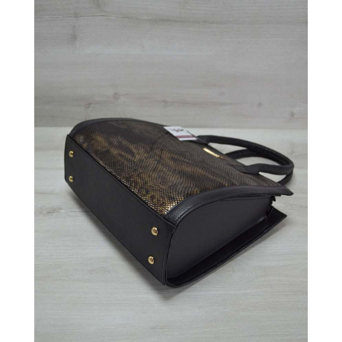 Жіноча сумка Бочонок золота змія з гладким чорним WeLassie