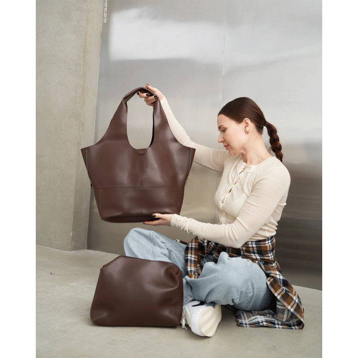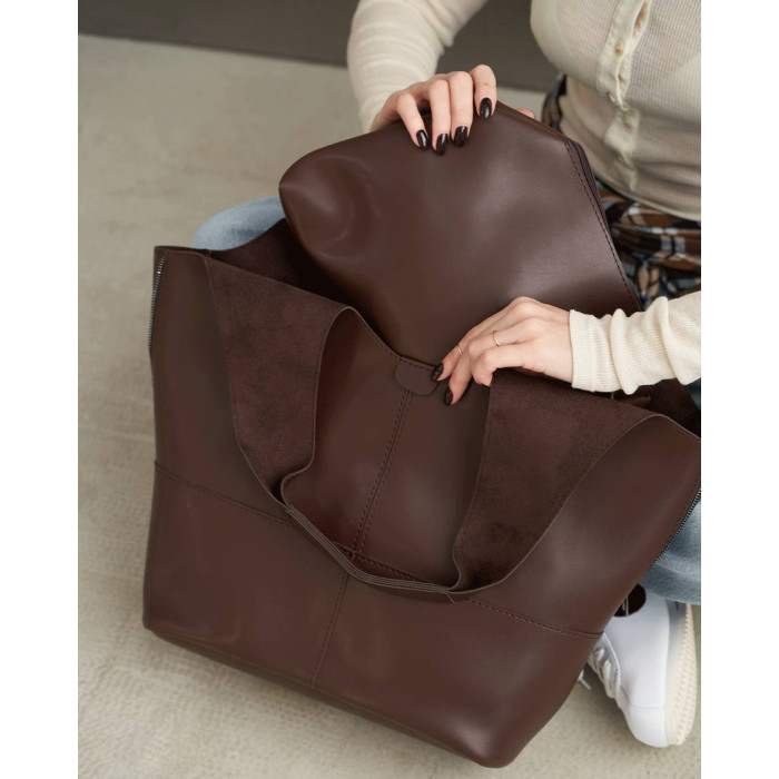Сумка жіноча 13205 від виробника «Welassie» Україна, колір шоколадний, матеріал екошкіри. Сумка відкривається за допомогою магніту. У середині сумка має косметичку.