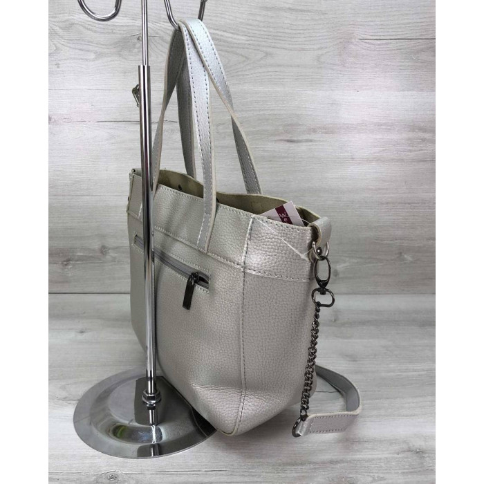 Жіноча, молодіжна сумка Дарина, виготовлена з штучної шкіри, без підкладки. Відкривається за допомогою блискавки. Всередині має кишеню на блискавці. Зовні кишеня на блискавці для дрібних предметів. В комплекті є плечовий ремінець з ланцюжком