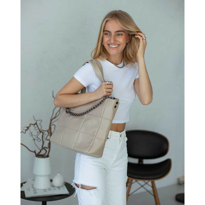 Сумка жіноча 66009 виробник "Welassie" Україна виконана з екошкіри високої якості. Сумка відкривається за допомогою блискавки, вміщує формат А4. Усередині сумка на щільній підкладці, має два відділення, між якими вшита косметичка. Також всередині є дві кишені: відкрита і на блискавки. Сумка прикрашена спереду ланцюжком з кільцем.