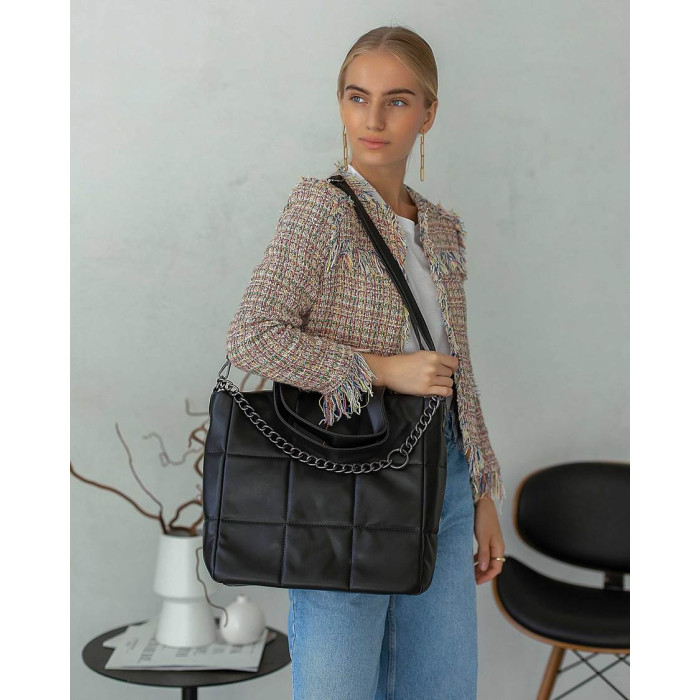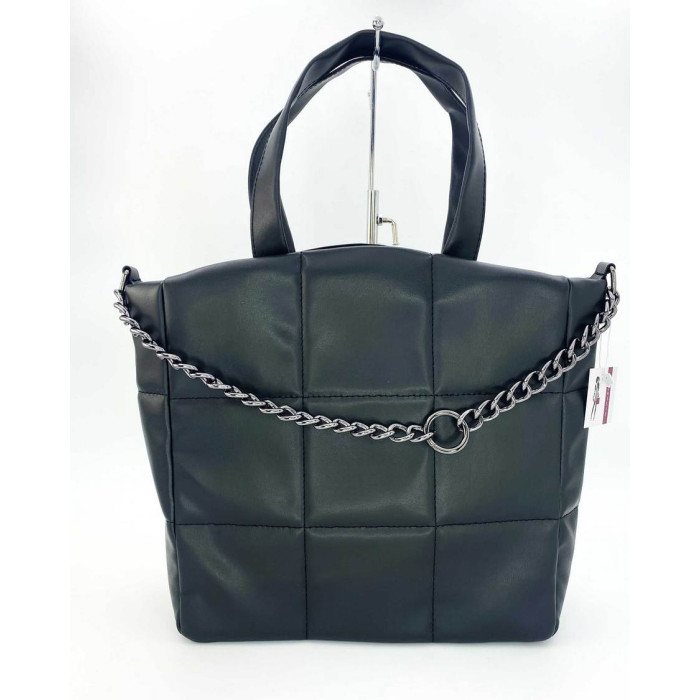 Сумка жіноча 66004 виробник "Welassie" Україна виконана з екошкіри високої якості. Сумка відкривається за допомогою блискавки, вміщує формат А4. Усередині сумка на щільній підкладці, має два відділення, між якими вшита косметичка. Також всередині є дві кишені: відкрита і на блискавки. Сумка прикрашена спереду ланцюжком з кільцем.