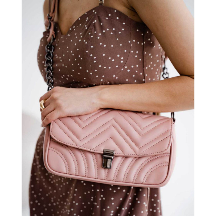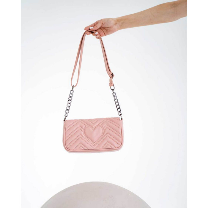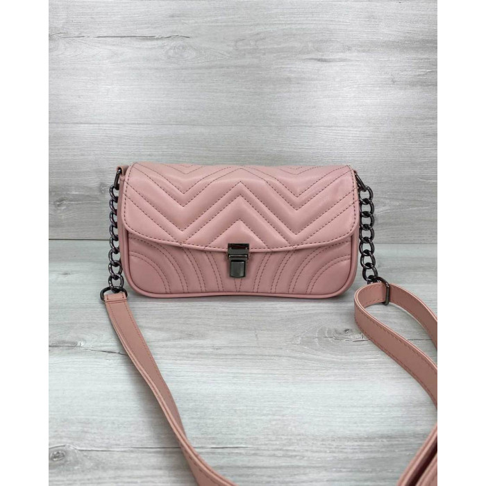 Модна жіноча сумка 64510, виробник Welassie Україна з екошкіри високої якості. Сумка відкривається за допомогою замка. Усередині сумка на щільній підкладці, має кишеню на блискавці для дрібних предметів. Сумка стьобана, на задній стороні сумки вишите сердечко. Плечовий ремінь прикрашений ланцюжком, регулюється під різну довжину, максимальна довжина 115 см.