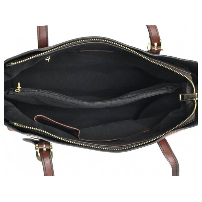 Елегантна жіноча сумка Grays чудово підходить впевненій в собі жінці. Лаконічна модель з натуральної гладкої шкіри декорована ремінцями в тон, які виконують дві функції: зручні довгі ручки і оригінальне оформлення. Металева фурнітура вишукано підкреслює смак власниці сумочки і славиться довгим терміном служби. Жіноча сумка ідеально підходить для перенесення дрібниць, таких милих дамському серцю. Під блискавкою-змійкою приховано основне відділення, розділене на 2 містких відділа кишенею-перегородкою. Також є прорізна кишенька на «змійці» і дві без застібок.