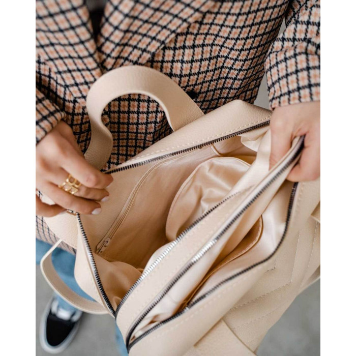 Сумка жіноча 63209 від виробника Welassie (Україна) з екошкіри високої якості. Матеріал морозостійкий, міцний і при цьому еластичний. Має щільну підкладку. Два окремих відділення, які відкриваються за допомогою блискавок. Також є дві кишені на блискавці: спереду і ззаду. Два комплекти ручок дозволяють носити сумку в руці, на згині лог і на плечі. Сумка вміщує зошити і аркуші формату А4.