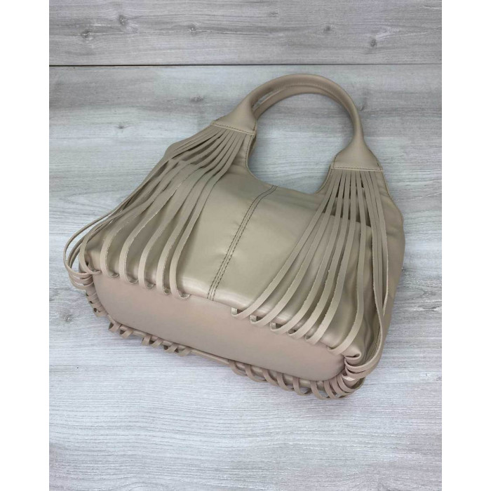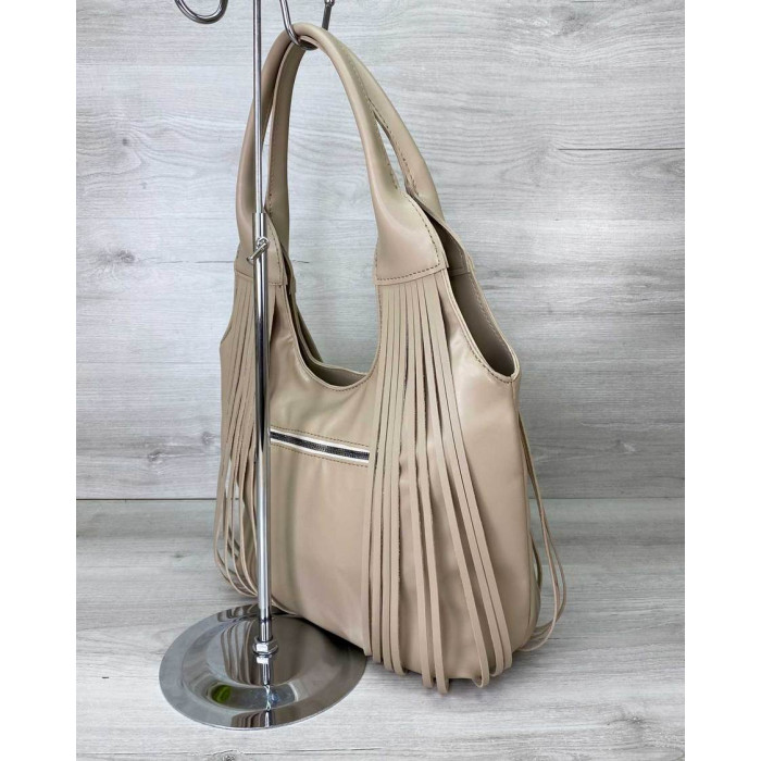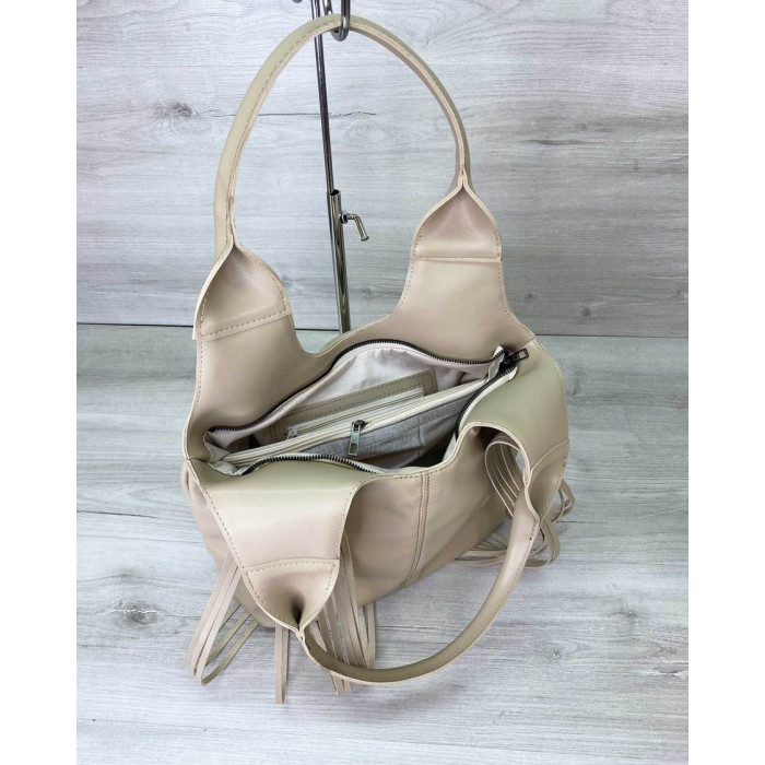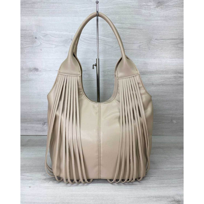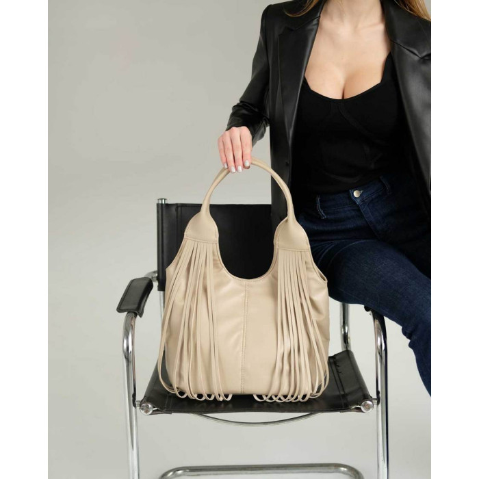 Сумка жіноча 63809 виробник Welassie Одеса, виконана з екошкіри високої якості. Сумка прикрашена бахромою. Відкривається за допомогою блискавки. Усередині сумка на щільній підкладці, поділена на дві частини вшитою посередині косметичкою на блискавки. Також є всередині дві кишені: на блискавці і відкрита. Зовні є кишеня для дрібних предметів.