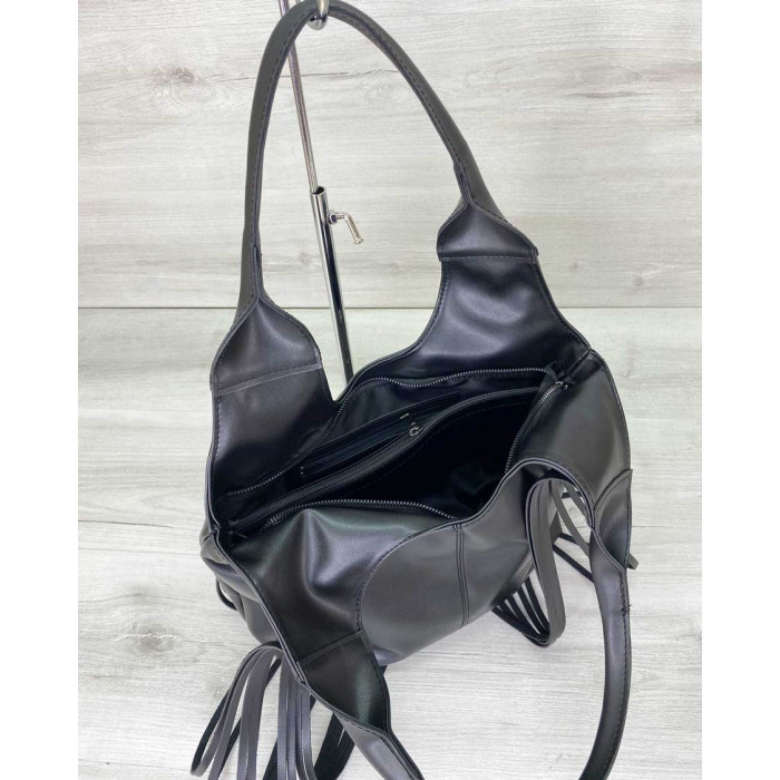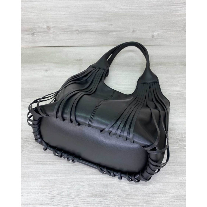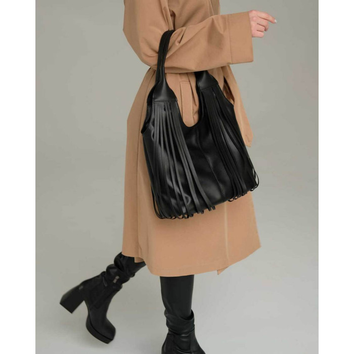 Жіноча сумка 63804 виробник Welassie Україна, виконана з екошкіри високої якості. Сумка прикрашена бахромою. Відкривається за допомогою блискавки. Усередині сумка на щільній підкладці, поділена на дві частини вшитою посередині косметичкою на блискавки. Також є всередині дві кишені: на блискавці і відкрита. Зовні є кишеня для дрібних предметів.