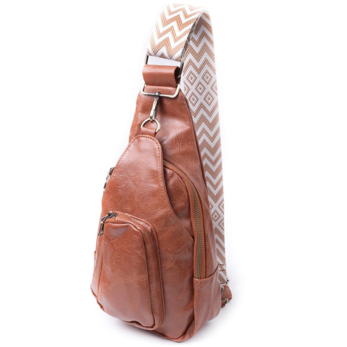 Стильна слінг сумка для жінок з красивою фактурною екошкірою. Дана модель складається з одного основного відділення, яке закривається на блискавку і в якому знаходиться дві кишені відкритого типу всередині, а також двох кишень зовні та одного отвору для кабелю або навушників, що дуже зручно в сучасному світі. Акцентом даної моделі є зручний регульований плечовий ремінець у етнічному стилі, що дуже модно вже кілька сезонів. Екошкіра - високоякісна альтернатива натуральному матеріалу, яка дуже стійка до тертя, до низьких температур, відмінно носиться на відміну від інших штучних матеріалів, а також має гіпоалергенний склад на відміну від натуральної шкіри. Відмінний варіант сумки, який порадує будь-яку дівчину, тому що всі речі під рукою та в безпеці.