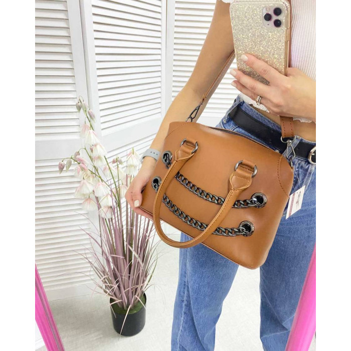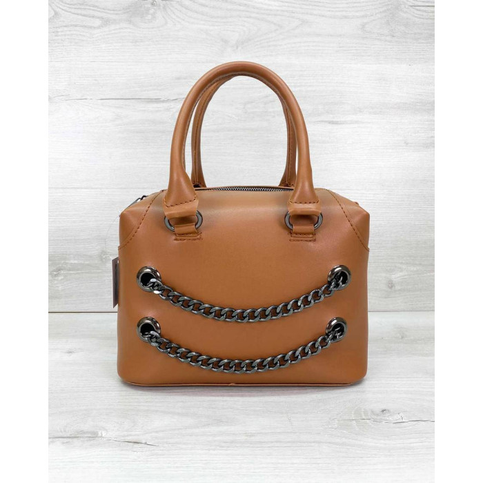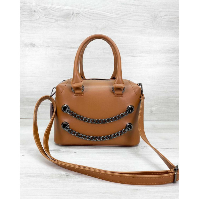 Молодіжна жіноча сумка 62502 Welassie (Україна) виготовлена з екошкіри високої якості. Матеріал м'який, еластичний, схожий на шкіру. Сумка відкривається за допомогою блискавки, на підкладці. Усередині сумка має одне відділення, кишеню на блискавці і відкрита кишеню. Передня частина сумки прикрашена двома ланцюжками. В комплекті сумка має регульований плечовий ремінь, що дозволяє носити сумку крос боді. Максимальна довжина 120 см,