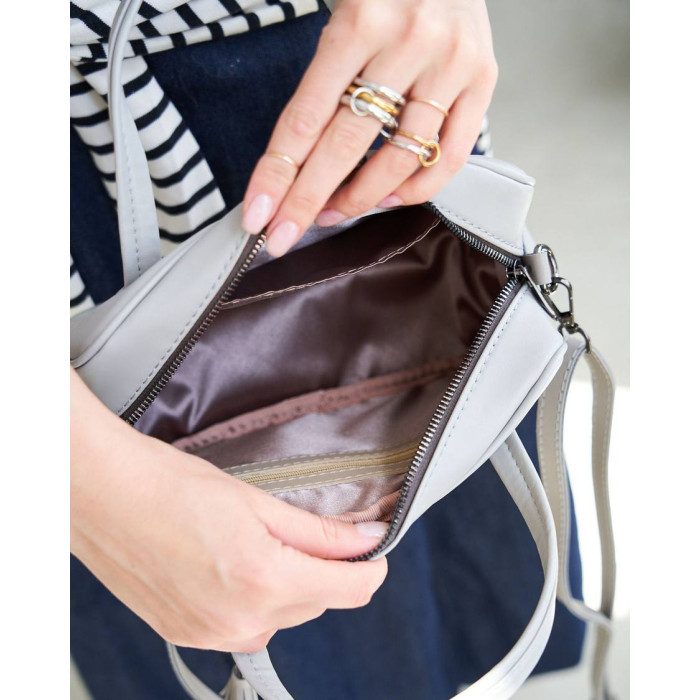 Жіноча сумка 71501 від виробника «Welassie» Україна, колір сірий, матеріал єко шкіра. Сумка відкривається за допомогою блискавки. Усередині сумка має одну відкриту кишеню і на блискавці.