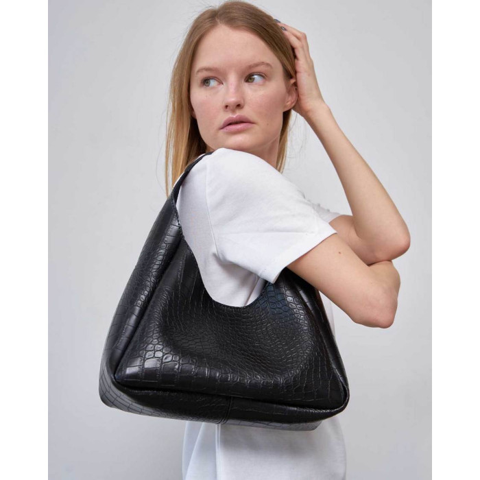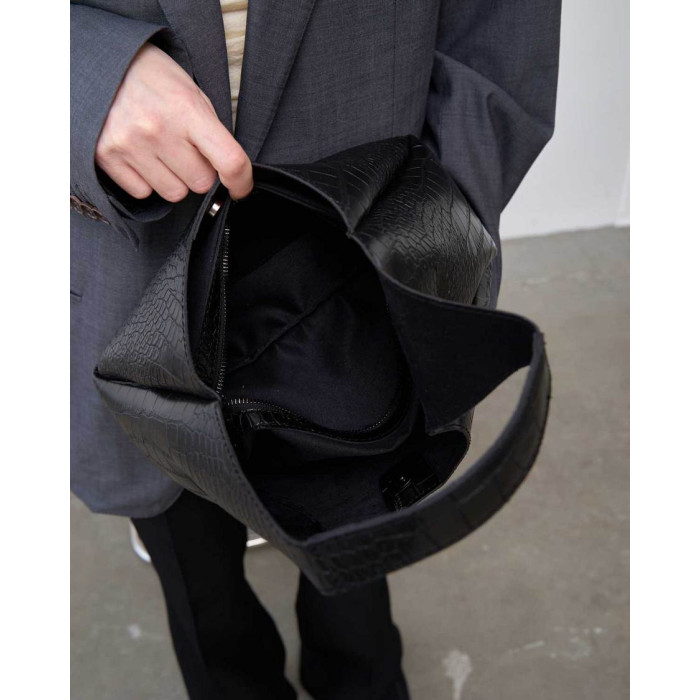 Сумка жіноча 68506 від виробника «Welassie» Україна, Колір Чорний, Матеріал сумки екошкіра високої якості, принт не однорідний. Сумка відкривається за допомогою магніту і блискавки. Всередині сумка на щільній підкладці.