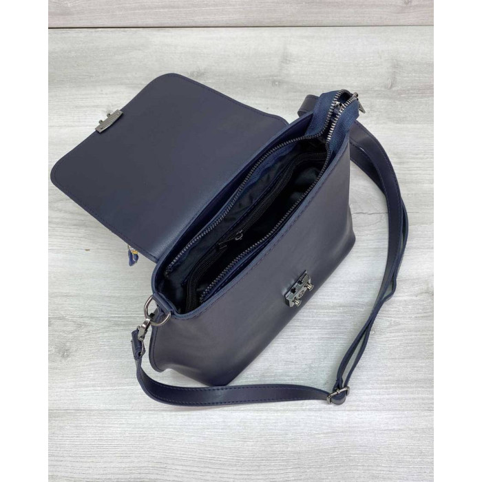 Жіноча сумка клатч 62103, виробник Welassie (Україна) зі штучної шкіри. Кришка відкривається за допомогою замка. Сумка має одне відділення, яке відкривається за допомогою блискавки. Посередині сумки вшита посередині косметичка на блискавці, яка ділить сумку навпіл. Усередині сумка має кишеню на блискавці і відкрита кишеню, а також зовнішній кишеню на блискавці для дрібних предметів. Знизу сумка має 4 хольнитены.