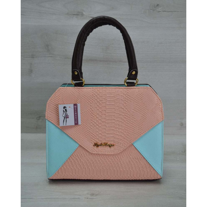Жіноча сумка Конверт пудра з синьому крокодилом WeLassie