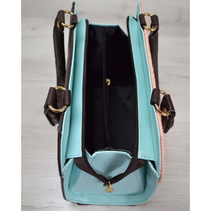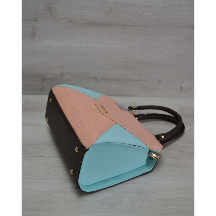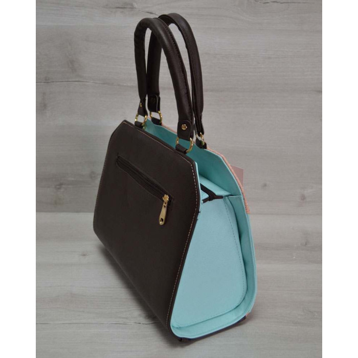 Жіноча сумка Конверт коричнева з пудрово-блакитною вставкою WeLassie