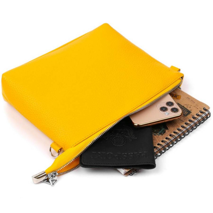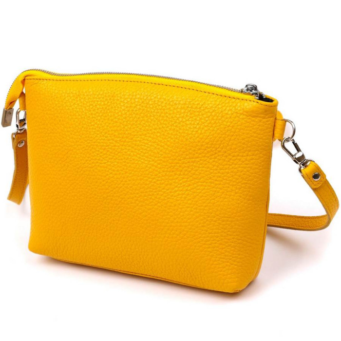 Стильна сумка крос-боді в красивому соковитому жовтому кольорі для яскравих безжурних дівчат. Виконано модель з натуральної шкіри високої якості з відмінними показниками в експлуатації. Основне відділення досить містке та просторе. Ремінець регулюється по довжині та виконаний також зі шкіри.