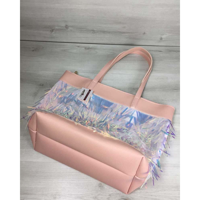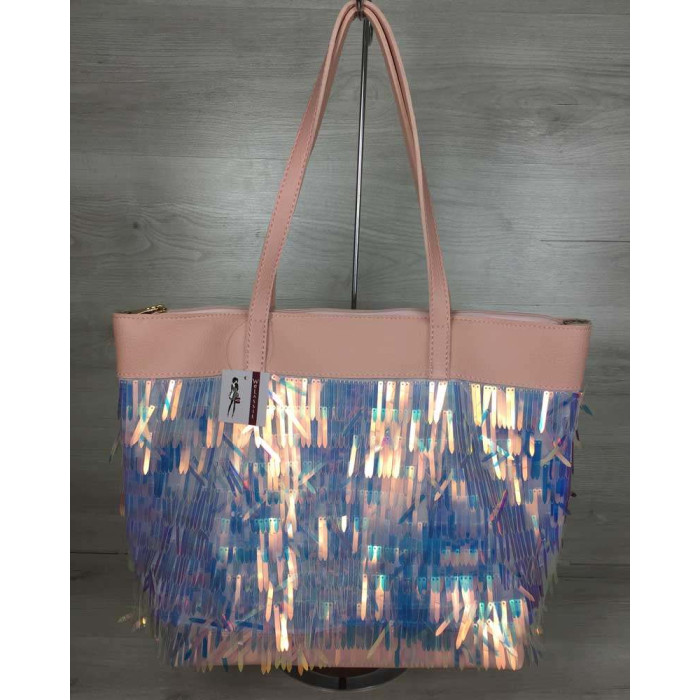 Жіноча сумка "Пляж", виготовлена з штучної шкіри. Передня частина сумки прикрашена паєтками у вигляд..