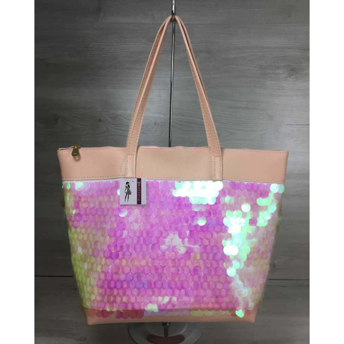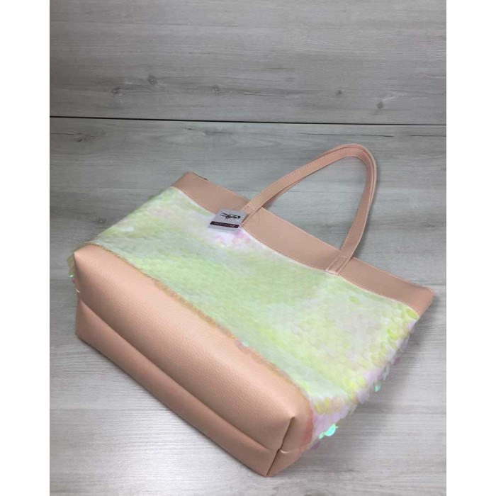 Жіноча сумка "Пляж", виготовлена з штучної шкіри. Передня частина сумки прикрашена паєтками у вигляд..