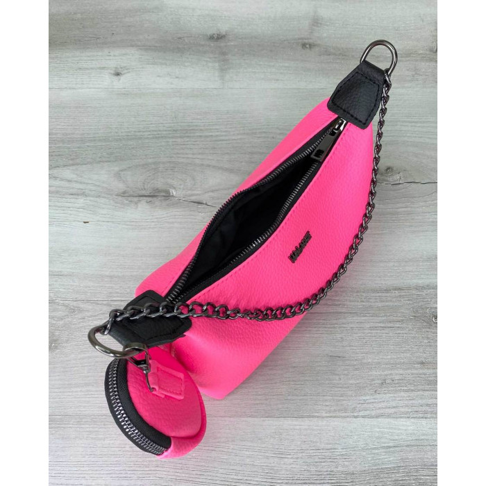 Жіноча сумка 64802 виробник "Welassie" Одеса, виконана з екошкіри високої якості. Сумка відкривається за допомогою блискавки. Усередині сумка на щільній підкладці, є відкрита кишеня для дрібних предметів. Плечовий ремінь укріплений стопою, регулюється під різну довжину, максимальна довжина 140 см. Сумка прикрашена ланцюжком, який можна використовувати як ручку. Довжина ланцюжка 41 см. В комплекті є маленька сумочка-гаманець на блискавки з розмірами: довжина 7 см., Ширина 3 см., Висота 10 см.
