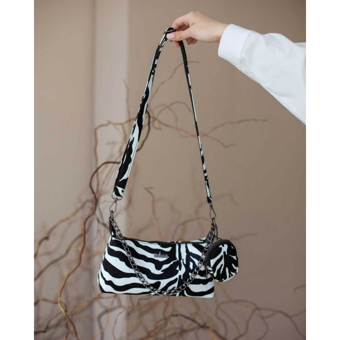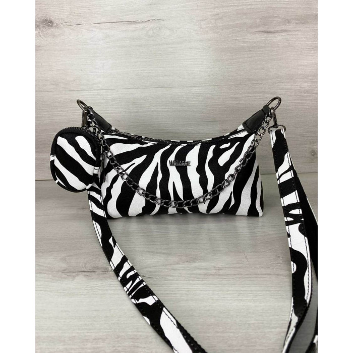 Сумка жіноча 64804 виробник Welassie (Україна) виконана з екошкіри високої якості. Сумка відкривається за допомогою блискавки. Усередині сумка на щільній підкладці, є відкрита кишеня для дрібних предметів. Плечовий ремінь укріплений стопою, регулюється під різну довжину, максимальна довжина 140 см. Сумка прикрашена ланцюжком, який можна використовувати як ручку. Довжина ланцюжка 41 см. В комплекті є маленька сумочка-гаманець на блискавки з розмірами: довжина 7 см., Ширина 3 см., Висота 10 см.
