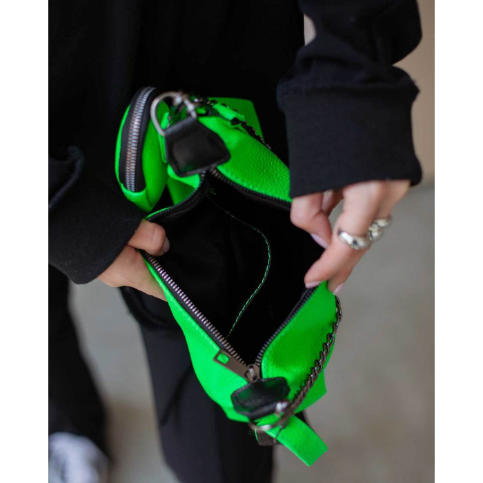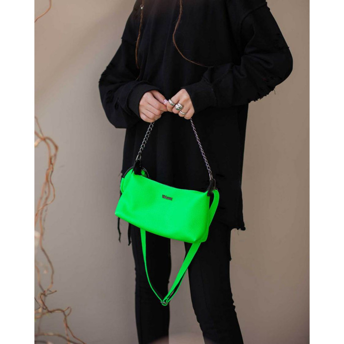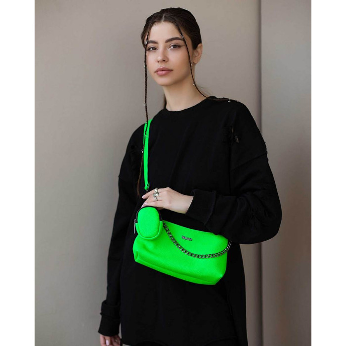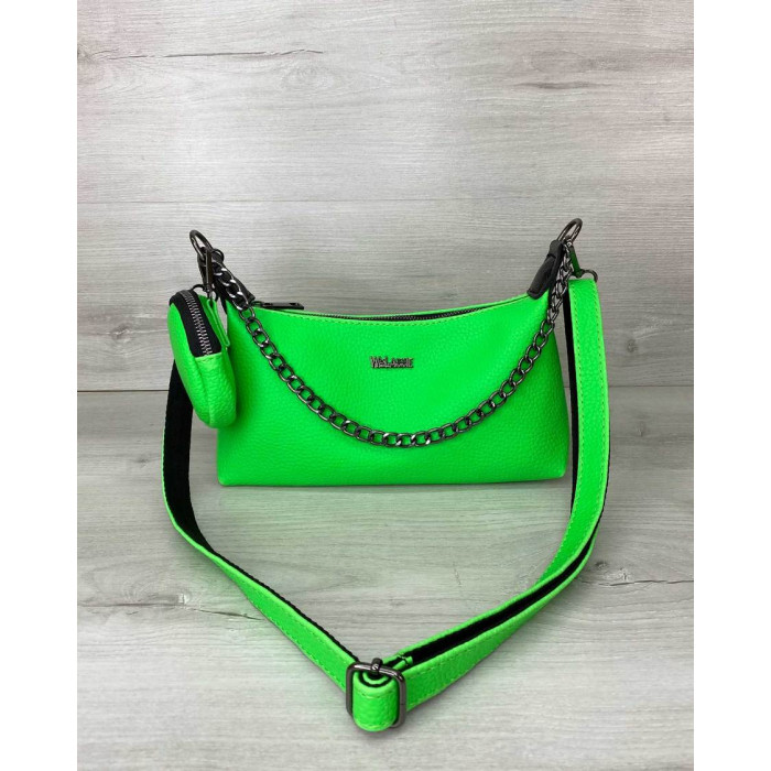 Сумка жіноча 64801 виробник "Welassie" Україна, виконана з екошкіри високої якості. Сумка відкривається за допомогою блискавки. Усередині сумка на щільній підкладці, є відкрита кишеня для дрібних предметів. Плечовий ремінь укріплений стопою, регулюється під різну довжину, максимальна довжина 140 см. Сумка прикрашена ланцюжком, який можна використовувати як ручку. Довжина ланцюжка 41 см. В комплекті є маленька сумочка-гаманець на блискавки з розмірами: довжина 7 см., Ширина 3 см., Висота 10 см.