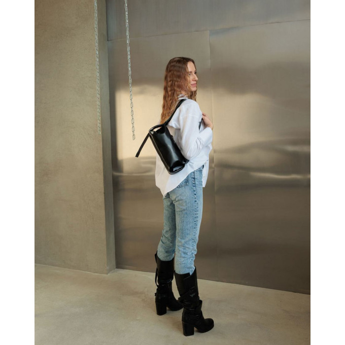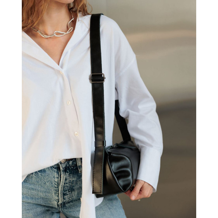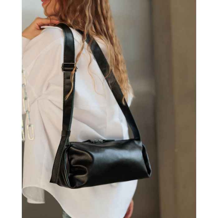 Сумка жіноча K6994, колір чорний, виробник Україна, матеріал натуральна шкіра. Сумка відкривається блискавкою. Усередині сумка має одну відкриту кишеню. Плечовий ремінь шириною 3 см регулюється під різну довжину.