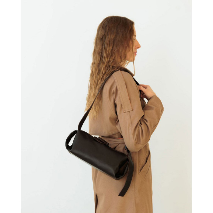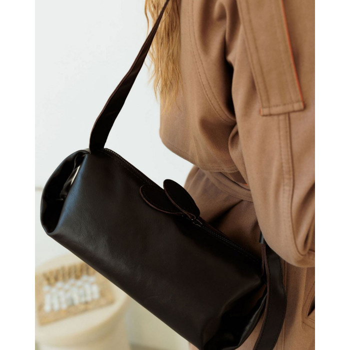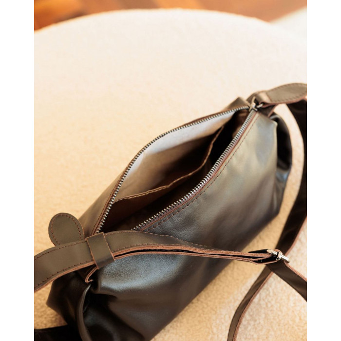 Сумка жіноча K6995 Україна, колір шоколадний, сумки в наявності опт і роздріб 7 км Одеса, матеріал натуральна шкіра. Сумка відкривається блискавкою. Усередині сумка має одну відкриту кишеню. Плечовий ремінь шириною 3 см регулюється під різну довжину.