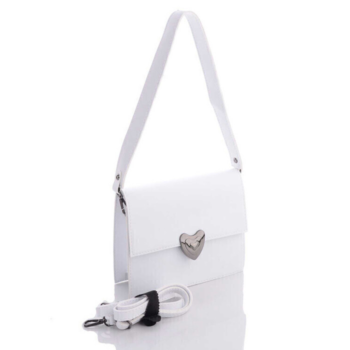 Сумка жіноча 69400 від виробника «Welassie» Україна, колір білий, матеріал екошкіра високої якості. Сумка відкривається за допомогою магнита та застібки. Кришка сумки прикрашена фурнітурою у виді сердечка.