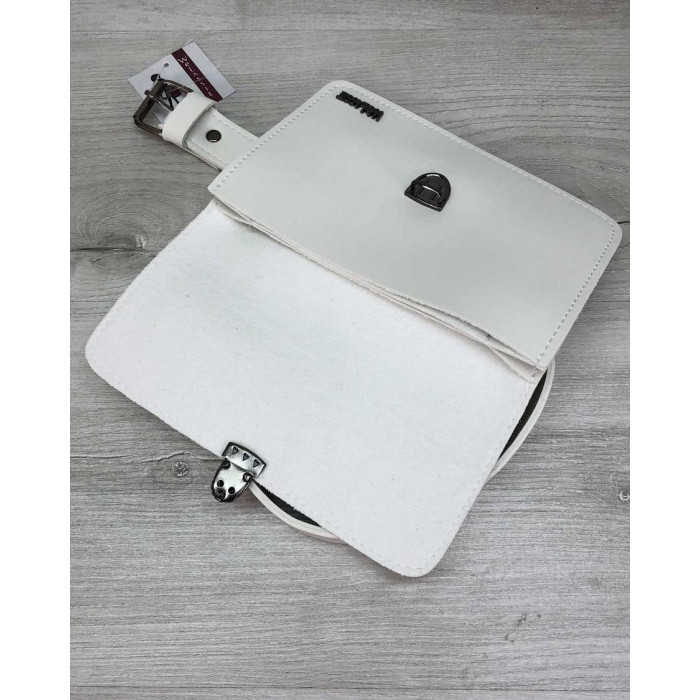Купити клатч білий або сумку на пояс Арья, виготовлена з штучної шкіри. Кришка відкривається за допомогою засувки. Всередині має три відділення. В комплекті є плечовий ремінець і поясный ремінь