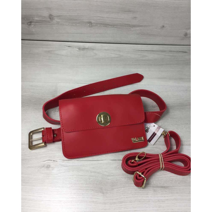 Клатчі червоного кольору або сумки на пояс Арья, виготовлені з штучної шкіри. Кришка відкривається за допомогою засувки. Всередині має три відділення. Додатково в комплекті є плечовий ремінець.