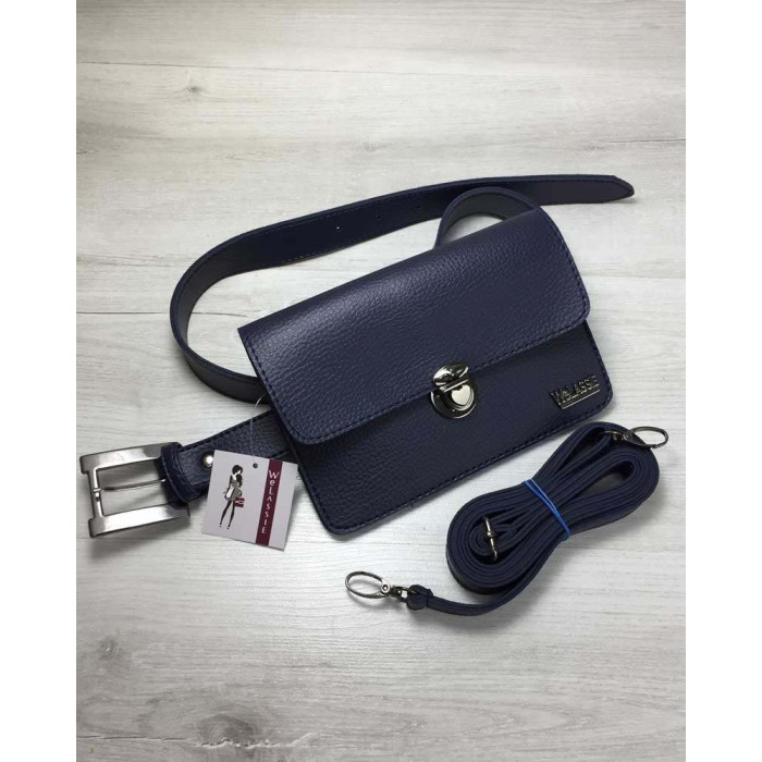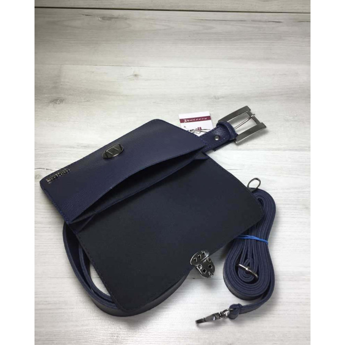 Купити синій клатч або сумку на пояс Арья, виготовлена з штучної шкіри. Кришка відкривається за допомогою засувки. Всередині має три відділення. В комплекті є плечовий ремінець і поясный ремінь. Синій купити клатч від виробника завжди вигідно.