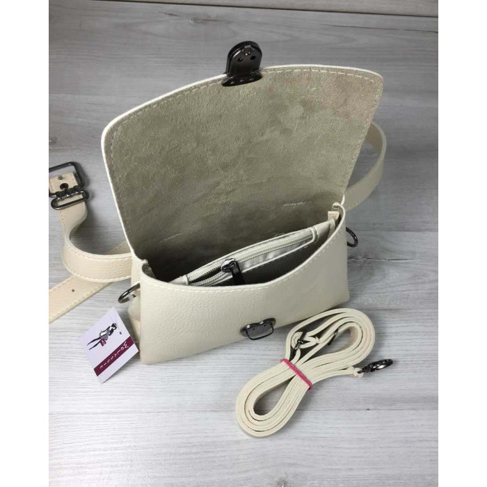Стильна жіноча сумка на ланцюжку 60609. Це маленька молодіжна жіноча сумка зі штучної шкіри високої якості. Кришка відкривається за допомогою замка. Усередині має вшиту косметичку на застібці. Плечовий ремінь прикрашений ланцюжком, регулюється під різну довжину.
