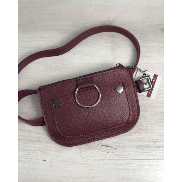 Жіноча сумочка на пояс Кеті, виготовлений з штучної шкіри. Відкривається за допомогою блискавки. Усередині одне відділення без підкладки. Спереду є відкритий кишеня для дрібних предметів. Додатково сумочка прикрашена кільцем діаметром 4,5 см Довжина поясного ременя 105 см.