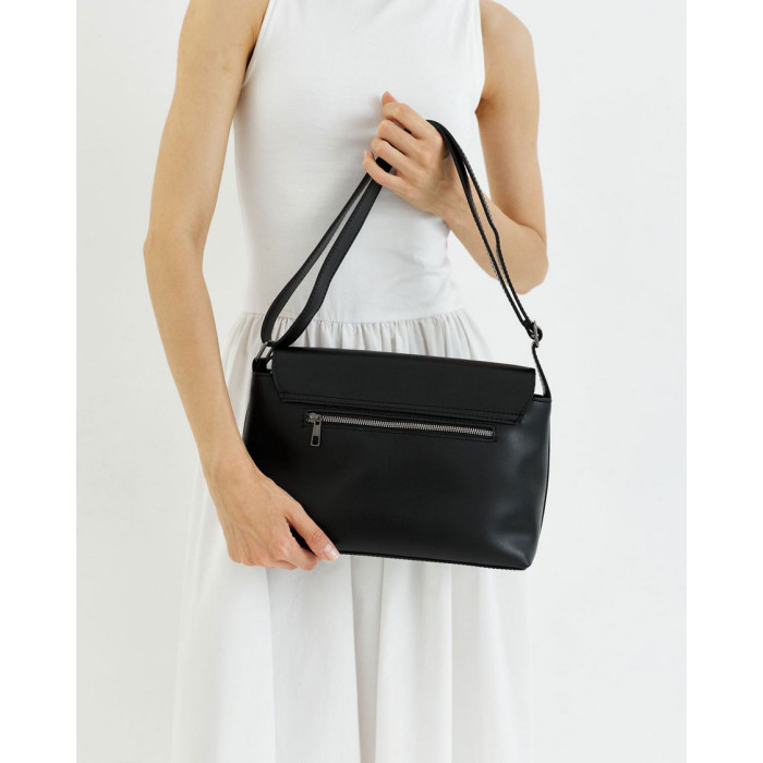 Сумка жіноча 12604 від виробника «Welassie» Україна, колір чорний, матеріал екошкіри. Сумка відкривається за допомогою блискавки. У середині сумка має 2 кишені: на блискавці і відкритий.Також зовні має кишеню на блискавці для дрібних предметів.