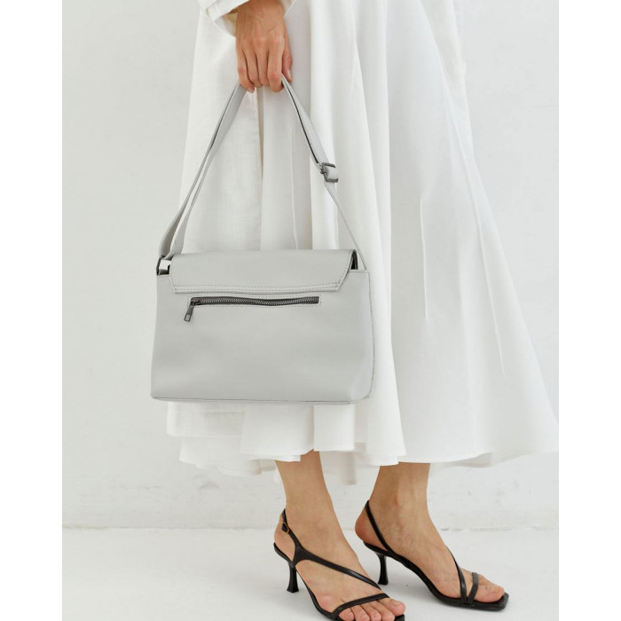 Сумка жіноча 12604 від виробника «Welassie» Україна, колір сірий, матеріал екошкіри. Сумка відкривається за допомогою блискавки. У середині сумка має 2 кишені: на блискавці і відкритий.Також зовні має кишеню на блискавці для дрібних предметів.