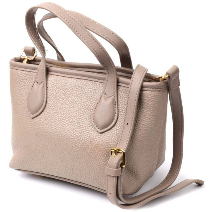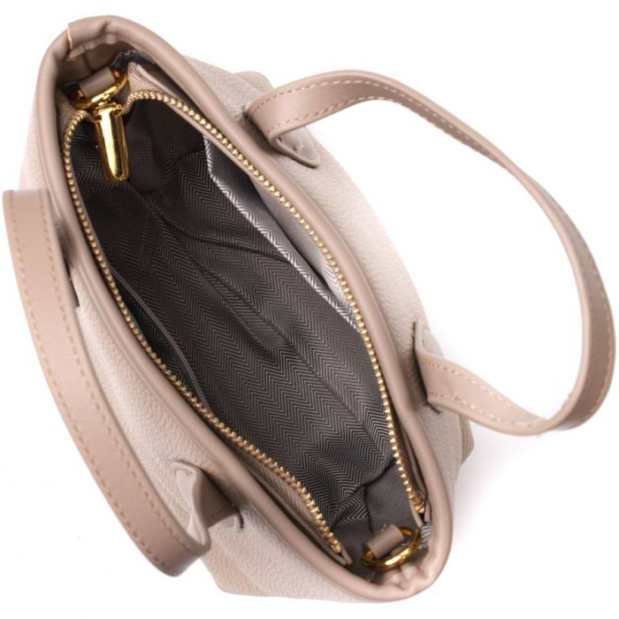 Стильна сумка з натуральної шкіри флотар, яка невибаглива у догляді та довго носиться. Аксесуар складається з одного основного відділення, потайної кишені на блискавці та кишені відкритого типу. Носити сумку можна в руці, на плечі і через плече, для цього є шкіряні ручки і шкіряний ремінь, що знімається. В аксесуарі використано якісну фурнітуру кольору жовтого золота. Шкіряна сумка – найкращий подарунок для будь-якої дівчини.