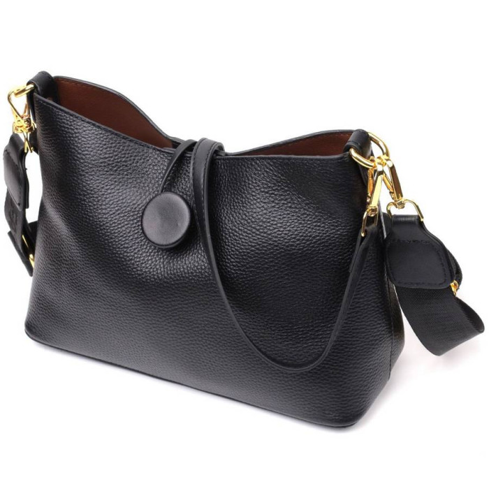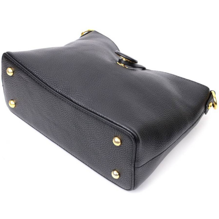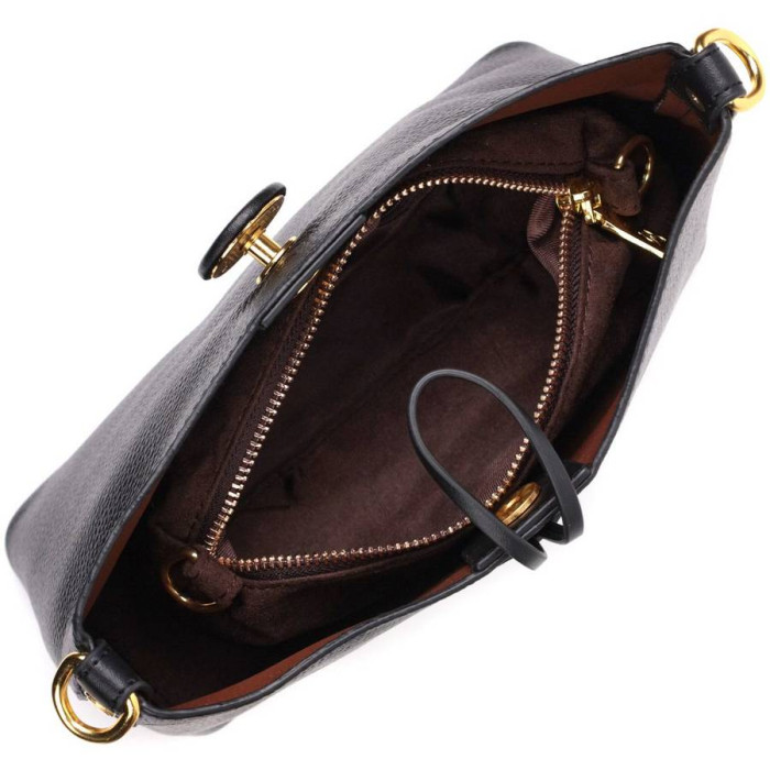 Оригінальна жіноча сумка без підкладки, з твердим дном і знімною тканинною косметичкою всередині - не залишить байдужою жодну жінку. Виріб пошитий з якісної натуральної шкіри, яка довго носиться і не втрачає свого первісного вигляду. Аксесуар складається з одного основного відділення, всередині якого розташована знімна тканинна косметичка. Носити сумку можна в руці, на плечі та через плече, для цього є шкіряний та текстильний ремені, що знімаються. У виробі використано якісну фурнітуру кольору жовтого золота. Універсальний варіант сумки як на вечір так і як сумочка на кожен день.