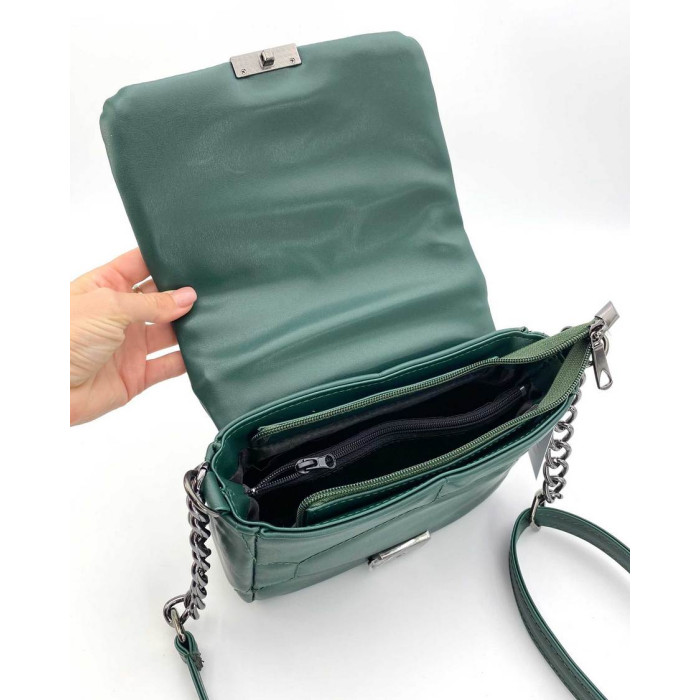 Маленька жіноча сумка стьобана 90508 від виробника «Welassie» Україна з екошкіри високої якості. Сумка відкривається за допомогою замка і блискавки. Усередині сумка на щільній підкладці. Вшита посередині косметичка ділить сумку на дві частини. Також всередині має відкриту кишеню. Ручка сумки прикрашена ланцюжком. Замок сумки відкривається натисканням на кнопку збоку під кришкою. Плечовий ремінь прикрашений ланцюжком, регулюється під різну довжину, максимальна довжина 135 см.