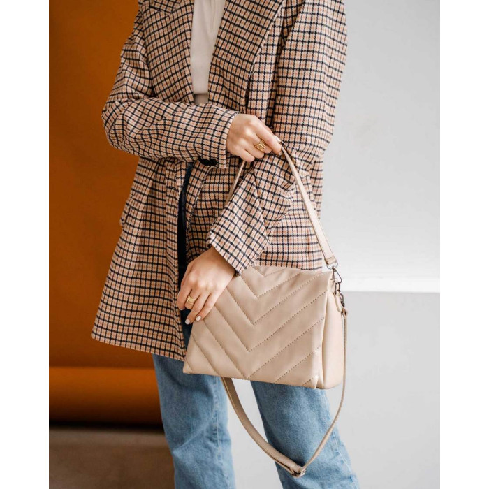 Модна жіноча сумка 64009 виробник Welassie Україна виконана з екошкіри високої якості. Сумка відкривається за допомогою магніту, під кришкою блискавка. Усередині сумка на щільній підкладці, має два відділення, між якими вшита косметичка. Також всередині є дві кишені: відкрита і на блискавки. Довжина плечового ременя 120 см., Довжина ручки 50 см. Розміри сумки: довжина 27 см., Ширина 11 см., Висота 19 см.