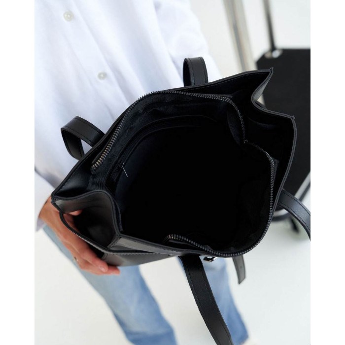 Сумка жіноча 15304 від виробника «Welassie» Україна, колір чорний, матеріал екошкіра високої якості. Сумка відкривається за допомогою застібки-блискавки. Усередині сумка має вікритий карман та на змійці