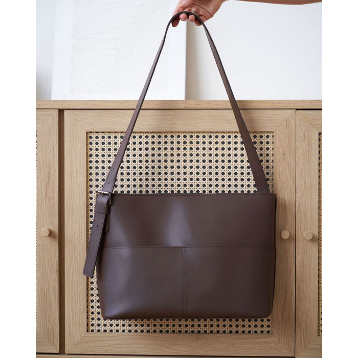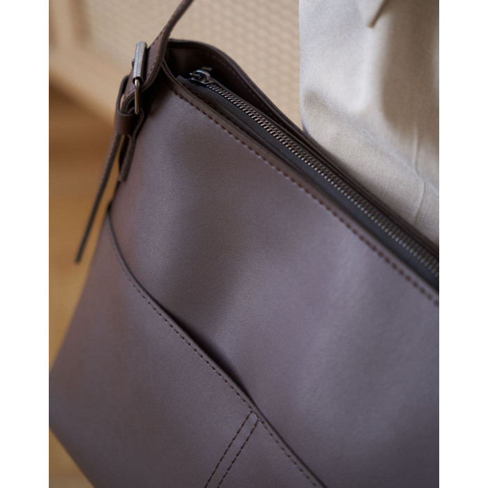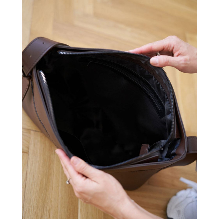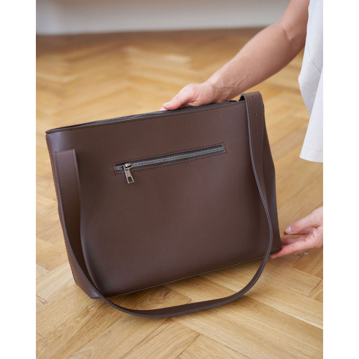 Сумка жіноча 12704 від виробника «Welassie» Україна, колір шоколадний, матеріал екошкірної сумки. Сумка відкривається за допомогою блискавки. У середині сумка має 2 кишені: на блискавці і відкритий. Також зовні є 3 кишені для дрібних предметів: 2 відкриті і 1 на блискавці.