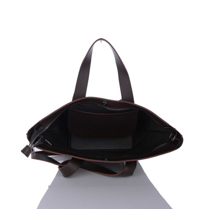 Сумка-трансформер жіноча 10805 від виробника «Welassie» Україна, колір шоколадний, матеріал екошкіра. Сумка відкривається за допомогою застібки-блискавки. Усередині сумка має каран. Сумка має два комплекти ручок, що дозволяє носити сумку в руці, на згині ліктя та на плечі.