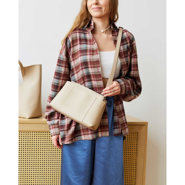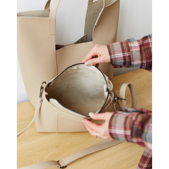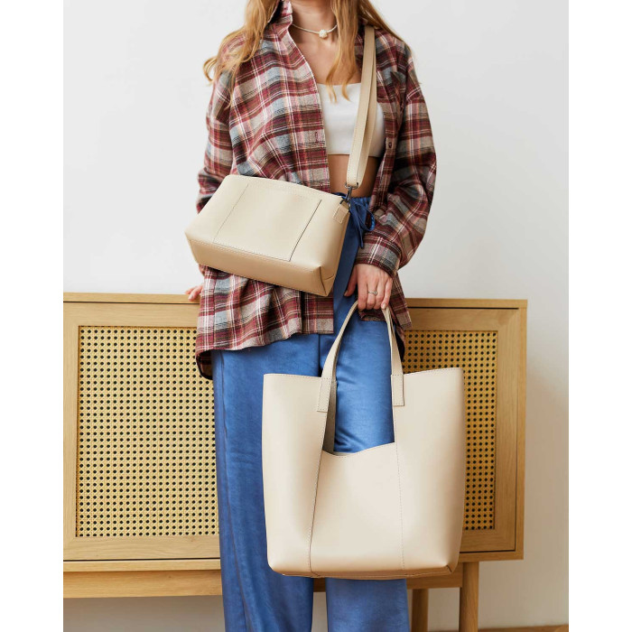 2в1 сумка жіноча 11609 від виробника «Welassie» Україна, колір бежевий, матеріал екошкіра високої якості (матеріал схож на натуральну шкіру). Комплект складається з дво хсумочок: шопер та сумка кросс-боді. Сумка-шопер зачиняється на магніт, сумка кросс-боді зачиняється на застібку-блискавку, має карман для дрібних предметів. Сумки можно носити як окремо, так і в комплекті.