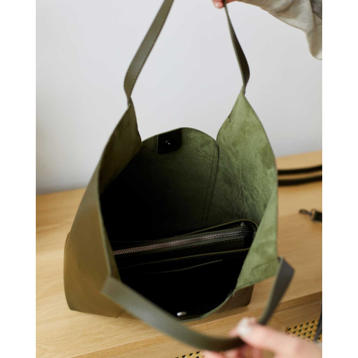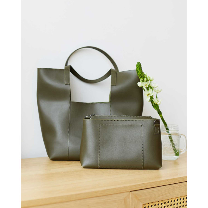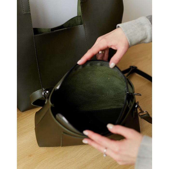 2в1 сумка жіноча 11608 від виробника «Welassie» Україна, колір оливковий, матеріал екошкіра високої якості (матеріал схож на натуральну шкіру). Комплект складається з дво хсумочок: шопер та сумка кросс-боді. Сумка-шопер зачиняється на магніт, сумка кросс-боді зачиняється на застібку-блискавку, має карман для дрібних предметів. Сумки можно носити як окремо, так і в комплекті.