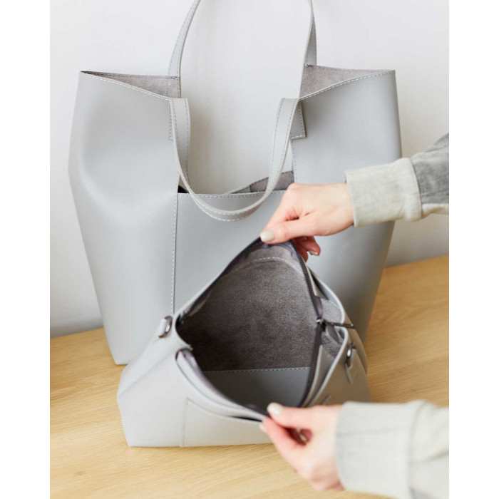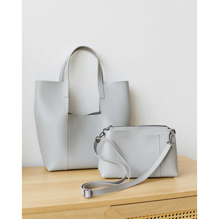 2в1 сумка жіноча 11601 від виробника «Welassie» Україна, колір сірий, матеріал екошкіра високої якості (матеріал схож на натуральну шкіру). Комплект складається з дво хсумочок: шопер та сумка кросс-боді. Сумка-шопер зачиняється на магніт, сумка кросс-боді зачиняється на застібку-блискавку, має карман для дрібних предметів. Сумки можно носити як окремо, так і в комплекті.