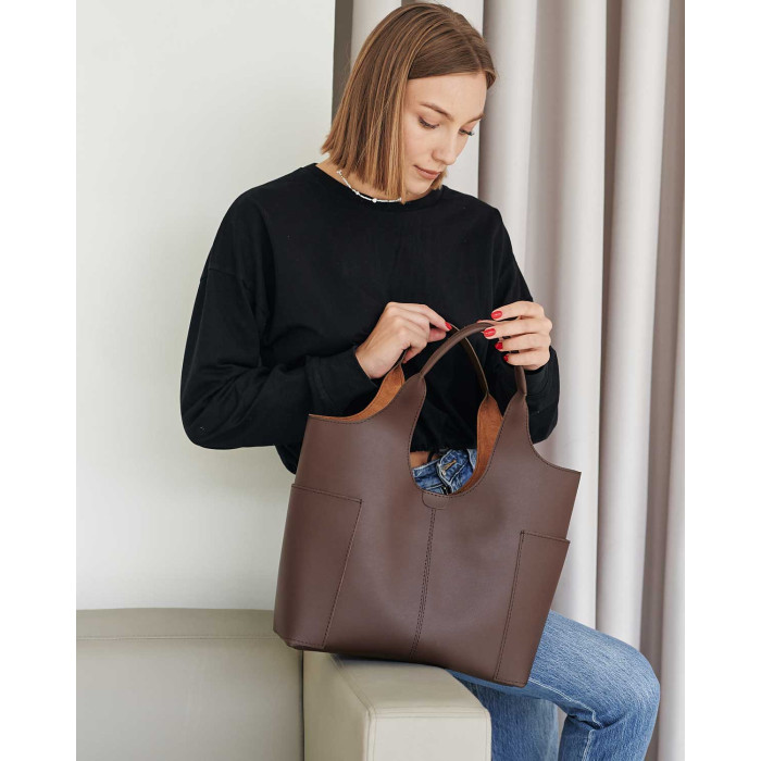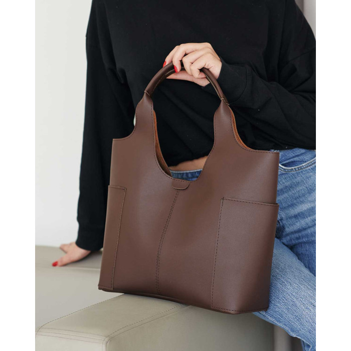 Сумка жіноча 69705 від виробника «Welassie» Україна, колір коричневий, матеріал екошкіра високої якості. Сумка відкривається за допомогою магніта. Усередині сумка має косметичку, яка прікріплена к сумці хлястиком.